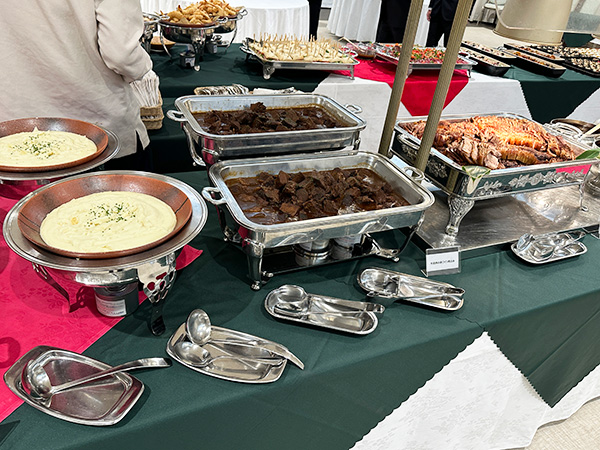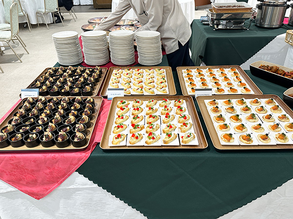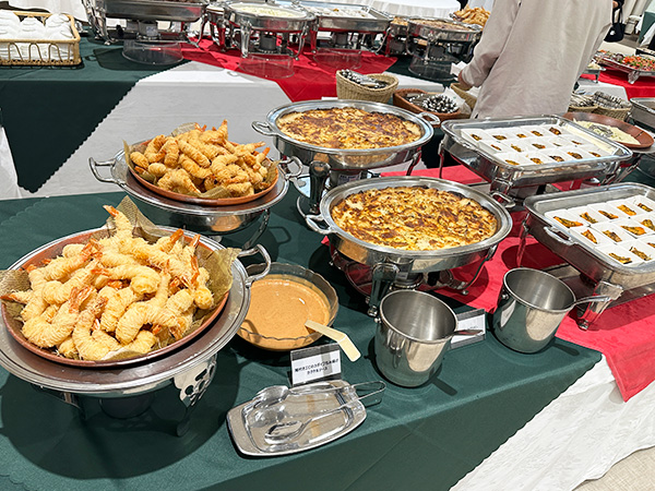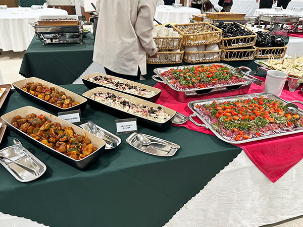 開会の直前頃には中央のテーブルに数々の料理が並べられており、とても食欲をそそる香りが会場に漂っていました。
