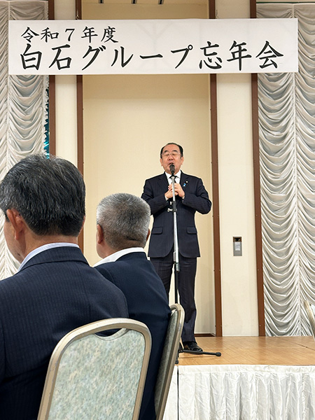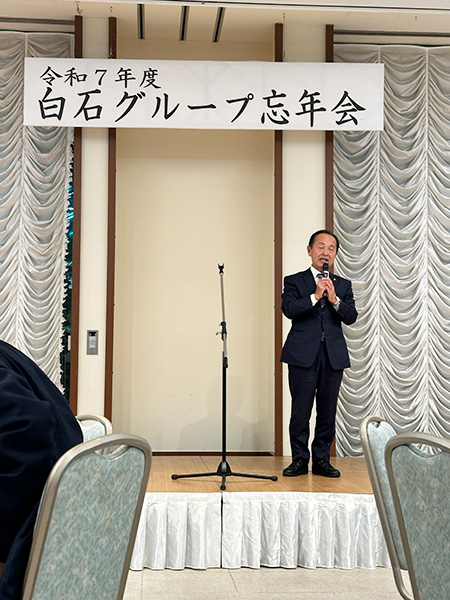 忘年会開始の時間になり、白石グループ代表として㈱白石の白石武之社長に開会の言葉と代表挨拶をいただき、忘年会が始まりました!