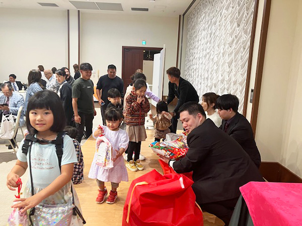 大抽選会を終えて来てくれた子供たちにプレゼントを配り終わる頃には、もう忘年会のお開きの時間も近づいてきました。