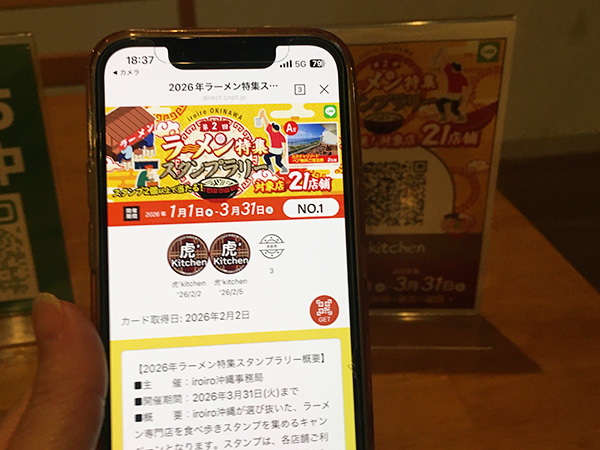 実は今、iroiro沖縄では「豪華景品が当たる!ラーメン特集LINEスタンプラリーキャンペーン」をやっていて、あぐー豚ラーメン 虎’kitchenさんも参加しています!