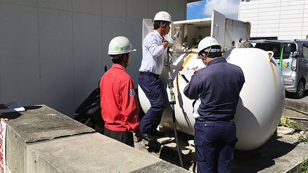 9月13日(木)、西原町字小那覇にある太平運輸株式会社にて、充てん作業者講習の実習を行いました。 充てん作業者講習は、民生用バルクローリーを使ってLPガスのバルク貯槽に充てん等の作業を行うために必要な資格を取得するための…