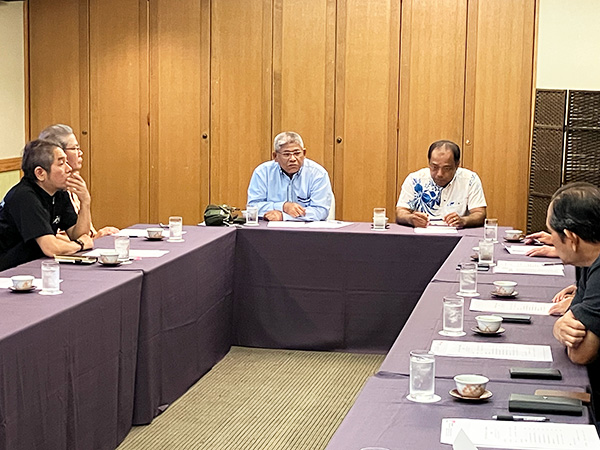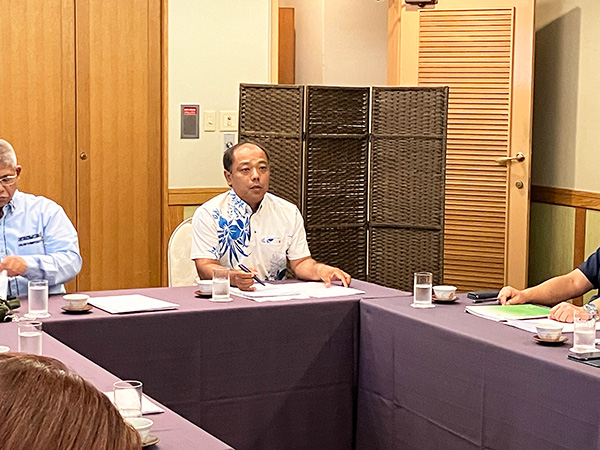 はじめに、白石プロパン会・与那嶺会長のご挨拶で店会が始まりました。
