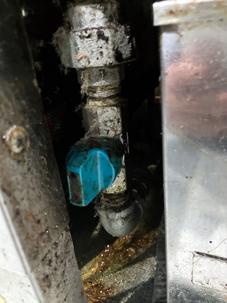 まず初めに、器具の型式や製造番号、どのように接続されているのか、配管の腐食はないか確認をします。