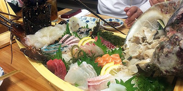 店内には大きな生簀がたくさんあって、そこからさばいてほしそうな魚介を取り出して豪快にさばいてあげます。