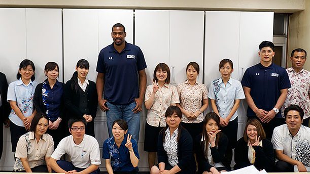 5月19日、B.LEAGUEに所属するプロバスケットボールチーム“琉球ゴールデンキングス”のラモント・ハミルトン選手、津山尚大選手、安永取締役、松原様が、シーズンの結果報告と来シーズンに向けての意気込みを含め、弊社にあい…