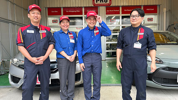 今回、ENEOS波之上店で「新入社員研修」を実施しましたので、その様子をお届けしたいと思います~ (研修前の波之上店スタッフとの集合写真) 右から2番目が新入社員の安野(ヤスノ)くんです。 気合が入った表情から良い緊張感…