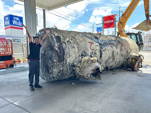 これは北谷美浜店オープン時から使用していた地下タンクで、30年以上のあいだ燃料供給を支え続けてきました。