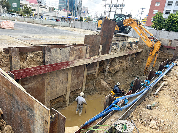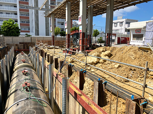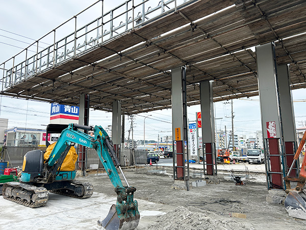 給油エリア周辺では掘削作業をしています。