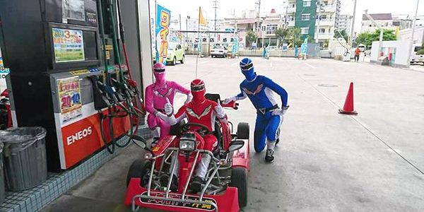 ヒーロー様 赤「これからね~、残波岬でバーベキュ・・・」