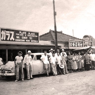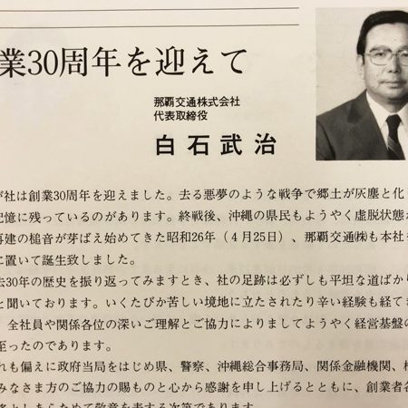 武治18歳の頃、故 白石武八郎(父)と共に、那覇市大道へ建設資材販売会社「白石商会」を創業。