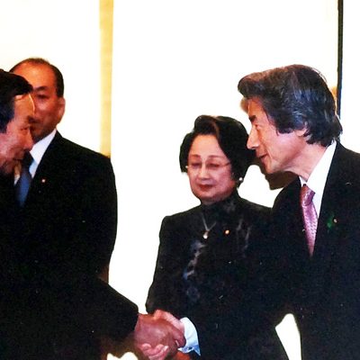 これまでの観光業界への功績から、国土交通省観光庁の栄えある第1回観光カリスマを受賞し、当時の小泉元首相と握手。