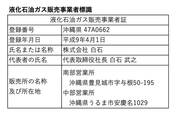 | 合同会社上間ガス産業 | 那覇市長田1-6-9 |